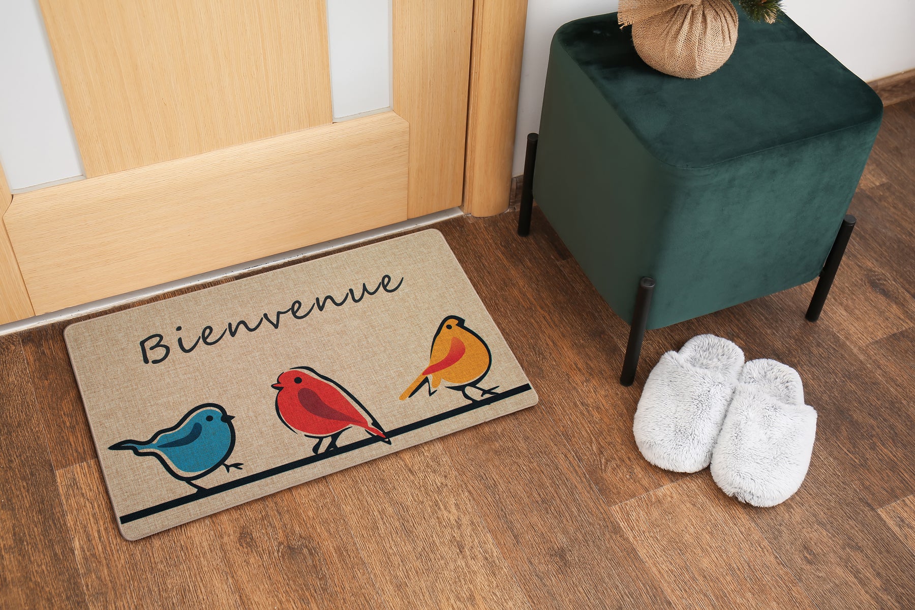 Welcome Birds Doormat will brighten up the mood in your room, doubling as versatile options for kitchen or bath mats.