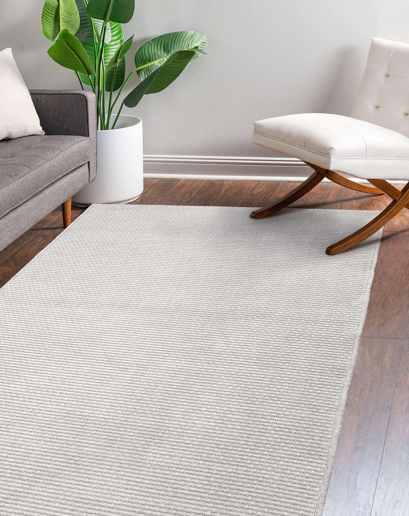 Hurdles White Swan Rug is a jute-like rug featuring an understated design and only available in a neutral color.