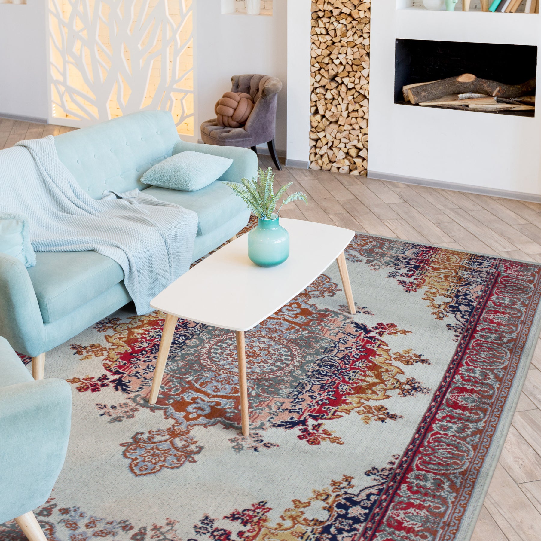 Medallion Silver Blue Rug offers quality and style at an affordable price. Enhance your living space with a traditional or contemporary design.